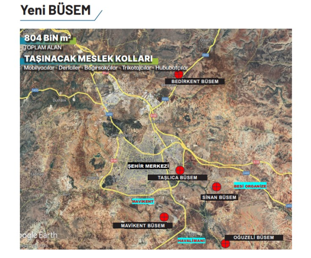 Diğer BÜSEM’ler için konum olarak Bedirkent, Taşlıca, Mavikent, Sinan ve Oğuzeli belirlendi. Kurulacak yeni 5 BÜSEM toplam 804 bin metrekare olurken mobilyacılar, dericiler, bağırsakçılar, trikotajcılar ve hububatçılar için yeni iş yerleri ortaya çıkacak.